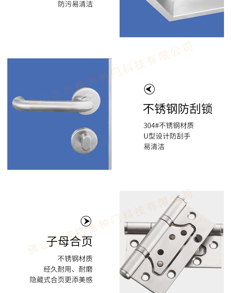 產品簡介:chnsige西格特種門,專業(yè)生產醫(yī)院門,醫(yī)院診室門,醫(yī)院辦公室門,醫(yī)院衛(wèi)生間門,木質醫(yī)院門,鋼質醫(yī)院門,多鐘款式、顏色,尺寸可定制。