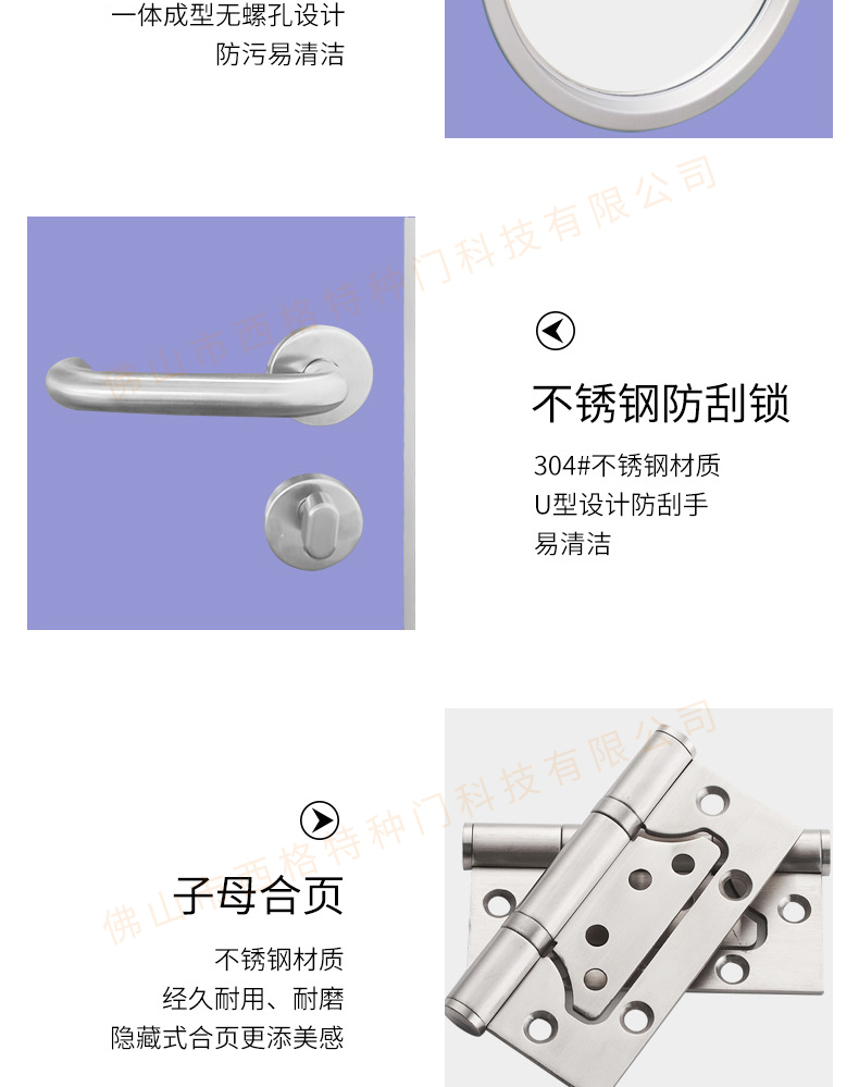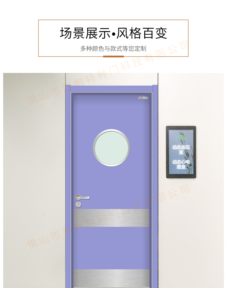 產品簡介:chnsige西格特種門,專業生產醫院門,醫院診室門,醫院辦公室門,醫院衛生間門,木質醫院門,鋼質醫院門,多鐘款式、顏色,尺寸可定制。