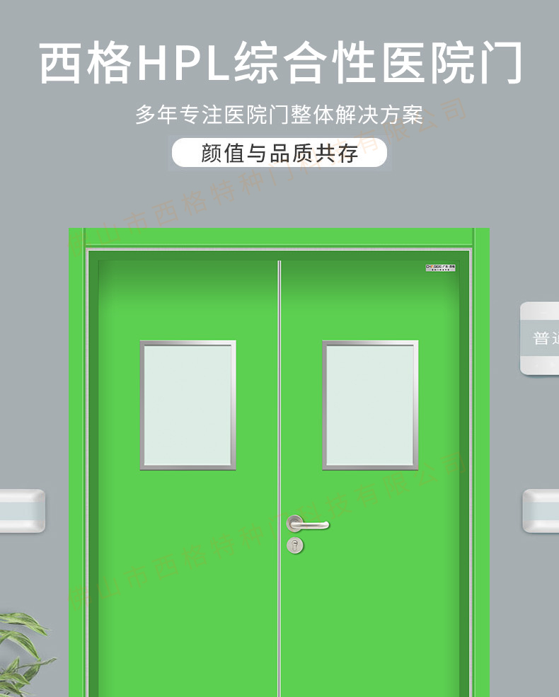產品簡介:chnsige西格特種門,專業生產醫院門,醫院診室門,醫院辦公室門,醫院衛生間門,木質醫院門,鋼質醫院門,多鐘款式、顏色,尺寸可定制。